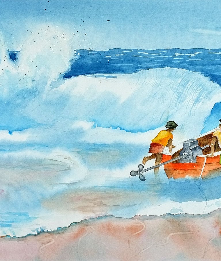 Fischer bei Mamallapuram | 34 x 45 cm